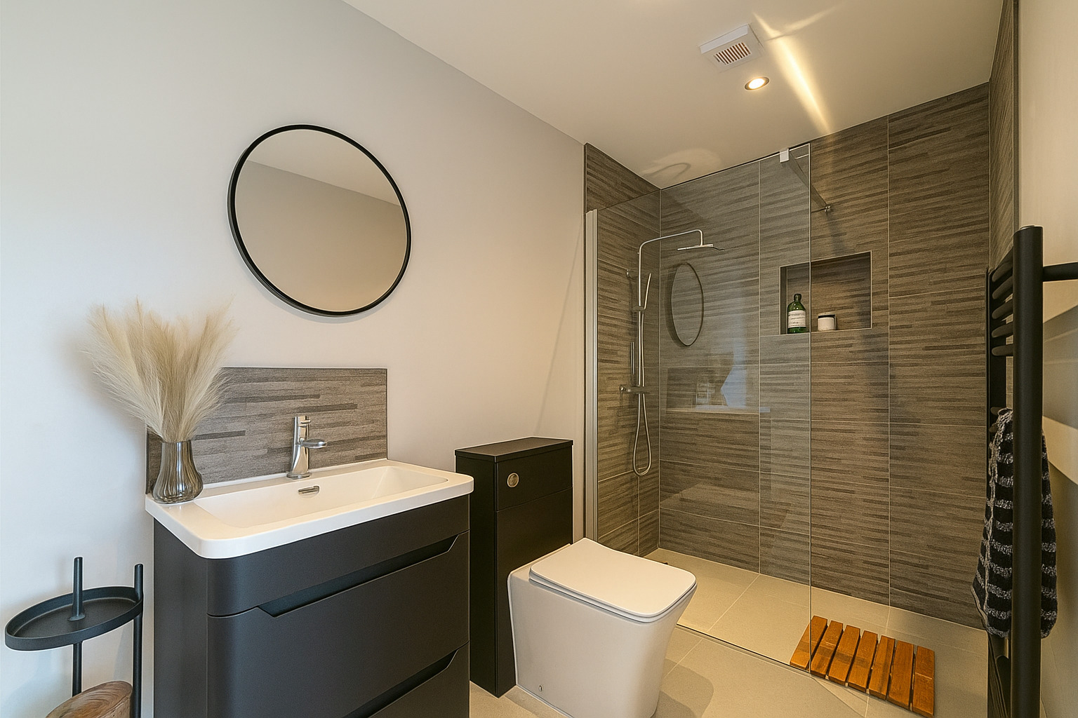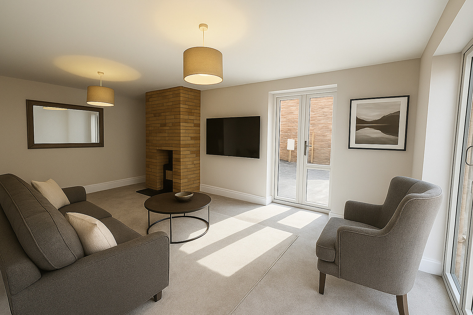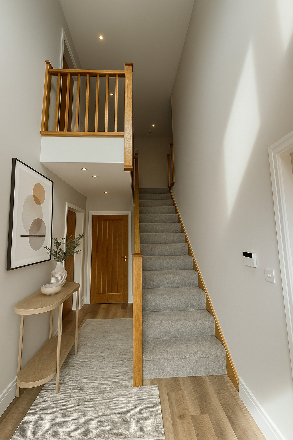 Introducing The Pintail – a truly unique home that seamlessly combines modern design with timeless elegance. This striking property features an open-plan kitchen diner that gracefully loops around to connect to a spacious lounge, complete with a charming log burner, creating a cozy yet stylish living space. The house also offers a separate study/office, perfect for remote work or quiet study time. The entrance hall welcomes you with soaring high ceilings, allowing you to look down from the upstairs landing, where an elegant oak staircase adds to the grandeur. The Pintail boasts four generous double bedrooms, with the master featuring a luxurious semi-wet room ensuite. Two additional ensuites and a spacious main bathroom ensure ample comfort and convenience for family or guests. Natural light floods the home through stunning floor-length windows, offering panoramic views of the surrounding scenery. The property also benefits from modern touches like underfloor heating, integrated kitchen appliances, and an EV charger, all adding to the home's appeal. Thoughtfully designed, The Pintail blends functionality with aesthetic beauty, offering a sophisticated yet comfortable living experience.